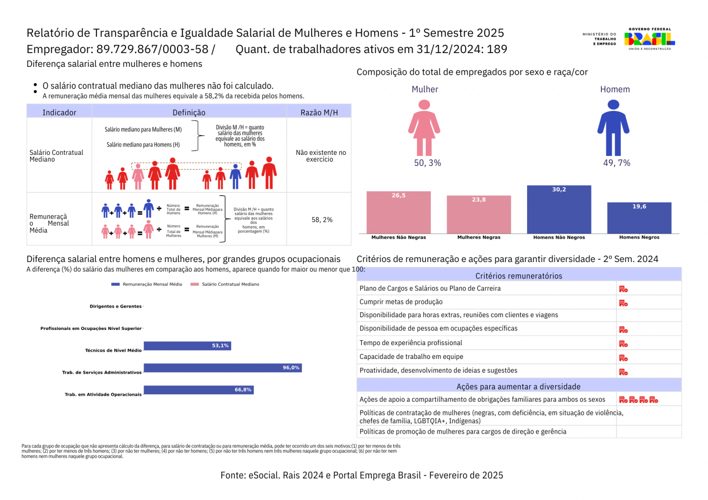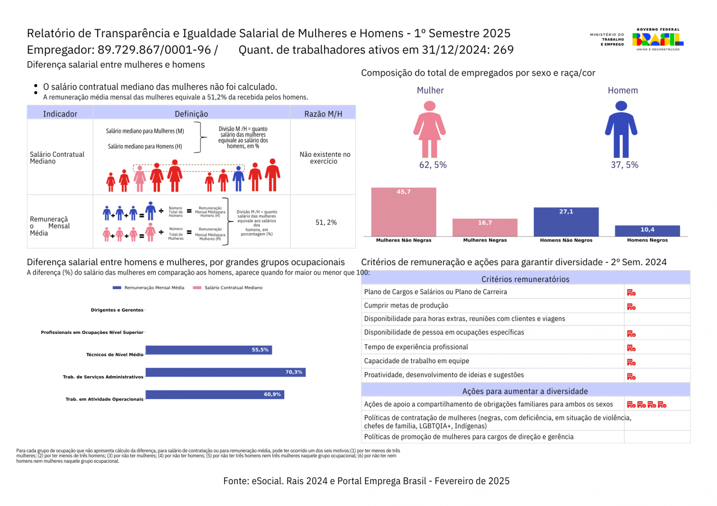 Conforme determinado pelo Ministério do Trabalho, apresentamos os Relatórios de Transparência e Igualdade Salarial de Mulheres e Homens 2025